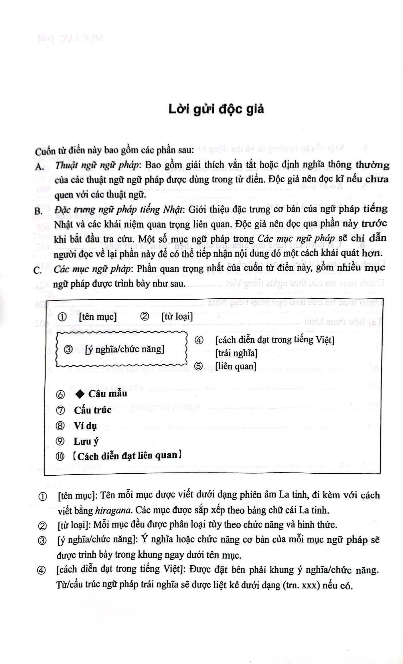 TỪ ĐIỂN NGỮ PHÁP TIẾNG NHẬT SƠ CẤP là ấn phẩm liệt kê và giải thích chi tiết các mẫu ngữ pháp tiếng Nhật trình độ sơ cấp theo phương pháp trình bày của một
