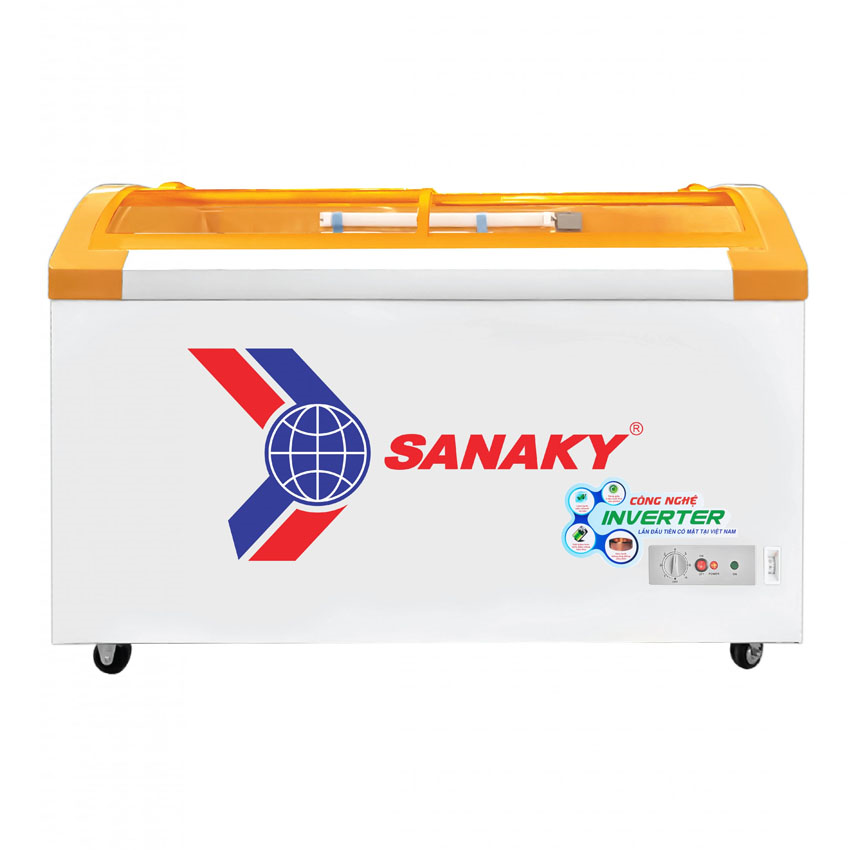 Tủ đông Sanaky 280 lít VH-3899KB thiết kế 2 cửa lùa cong bằng kính cường lực bền chắc, công nghệ làm lạnh trực tiếp và dàn lạnh bằng đồng giúp giữ lạnh thực phẩm hiệu quả,