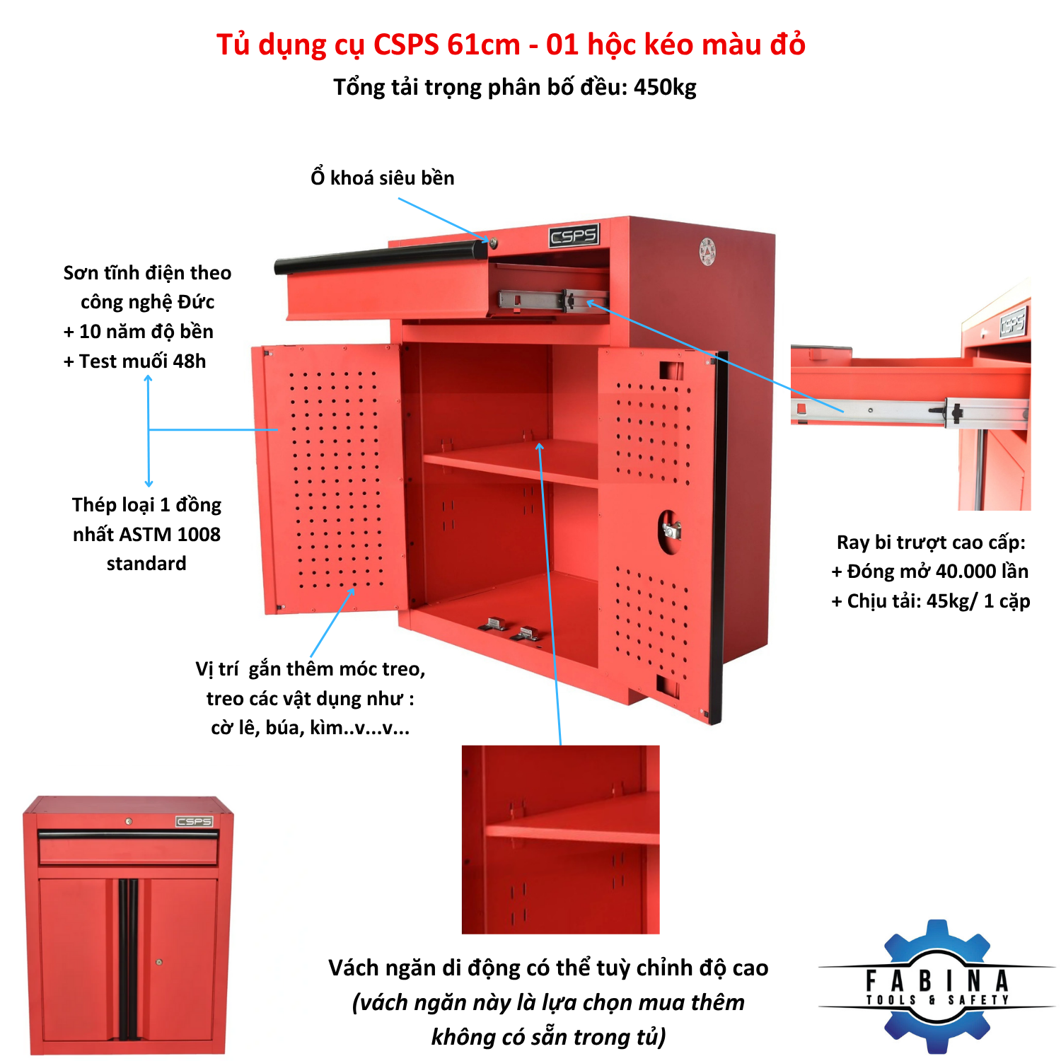 ✨Tủ dụng cụ CSPS 61cm - 01 hộc kéo màu đỏ
