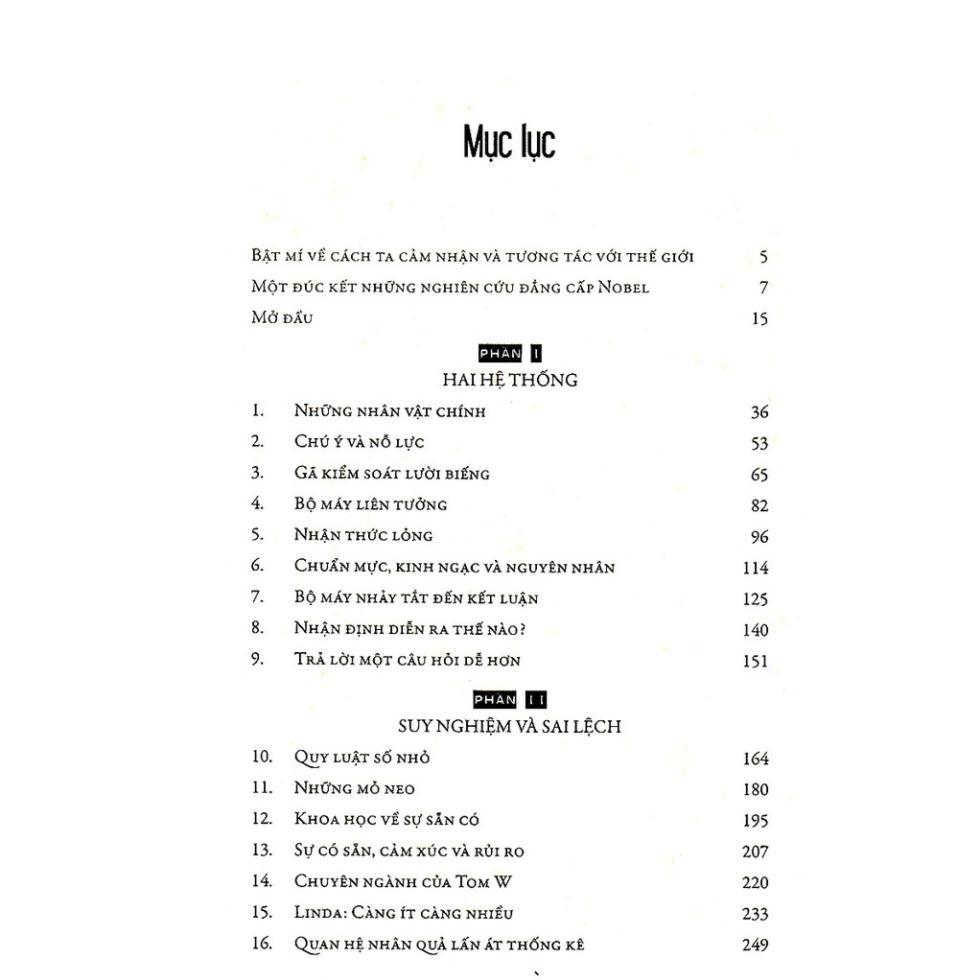 ------------ Tư Duy Nhanh Và Chậm (bản đặc biệt bìa cứng) Chúng ta thường tự cho rằng con người là sinh vật có lý trí mạnh mẽ, khi quyết định hay đánh giá
