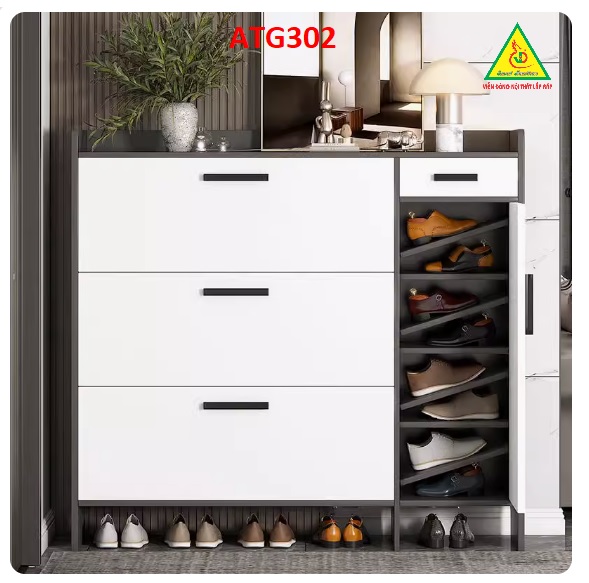 Ưu điểm chính của tủ giày cửa bật bản lề xoay là tiết kiệm không gian và tiện lợi khi sử dụng.
