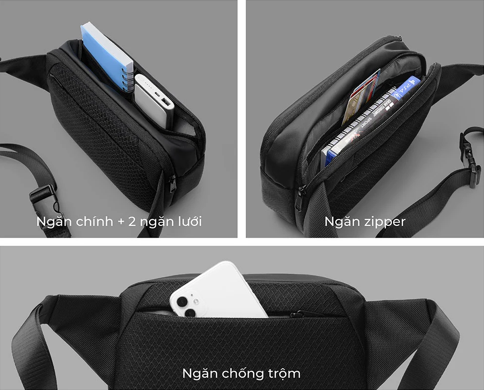 Túi đeo chéo bao tử nam nữ Sport du lịch thời trang đeo ngang hông đeo bụng đa năng 4 ngăn Túi có 4 ngăn linh hoạt, ngăn chính giữa có thêm 1 ngăn nhỏ