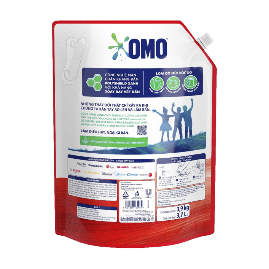 - Thân thiện môi trường với hoạt chất có nguồn gốc từ thiên nhiên OMO tự hào cùng các bé lấm bẩn trồng cây, kiến tạo thêm nhiều màn chắn xanh cho Việt Nam OMO MATIC - LỰA CHỌN THÔNG MINH ĐỂ CHĂM SÓC ÁO QUẦN GIA ĐÌNH MỘT CÁCH TOÀN DIỆN NHẤT OMO Matic mới được nâng cấp với hoạt chất làm sạch nguồn gốc thiên nhiên, thân thiện hơn với môi trường. Công nghệ Màn chắn Kháng bẩn Polyshield Xanh, giúp bao bọc và phủ một lớp màn chắn vô hình lên bề mặt sợi vải, loại bỏ nhanh chóng vết bẩn cứng đầu và mùi hôi trên áo quần Sản phẩm nước giặt OMO Matic Cho Máy Giặt là sự lựa chọn hàng đầu cho máy giặt cửa trên và luôn được khuyên dùng bởi 11 hãng máy giặt hàng đầu thế giới như Aqua, Panasonic, LG, S. ƯU ĐIỂM NỔI BẬT