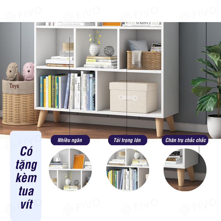 ✨Tủ Kệ Sách Gỗ Đa Tầng 4 Chân Cao Cấp FIVO Mẫu FB60 Màu Gỗ, Nội Thất Lắp Ráp Đơn Giản, Nhiều Ngăn Rộng Rãi (Có Kèm Tấm Lưng)