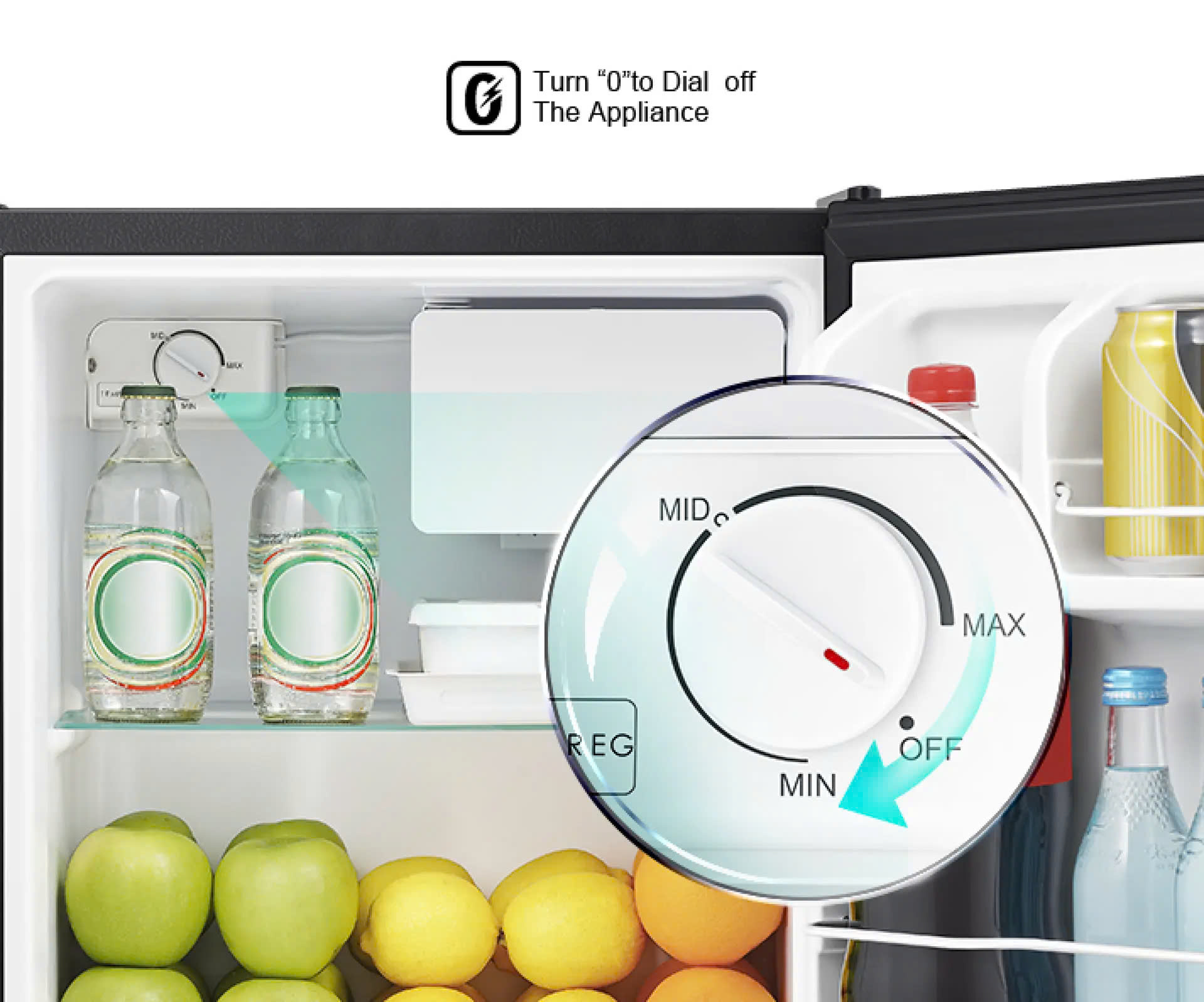 - Xoay nút vặn “0” điều chỉnh nhiệt độ, không cần ngắt điện mà chỉ cần xoay số "0" để dừng hoạt động tủ lạnh