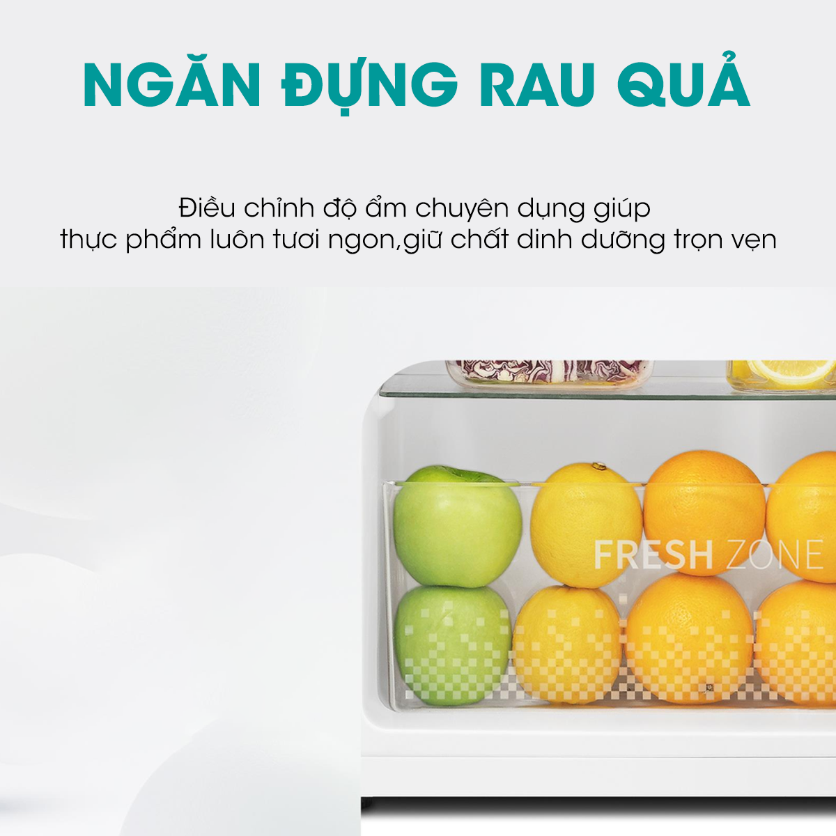 - Ngăn Đựng Rau Quả: Với tính năng điều chỉnh độ ẩm chuyên dụng, ngăn đựng rau quả nhằm bảo quản thực phẩm tươi ngon lâu hơn, giữ chất dinh dưỡng trọn vẹn.