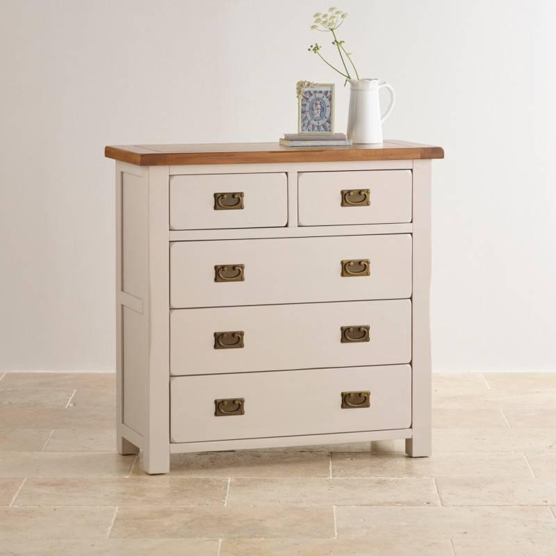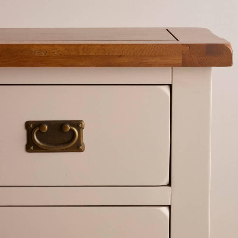 Tủ ngăn kéo 3+2 Kemble được thiết kế với không gian ngăn chứa rộng rãi, bao gồm hai ngăn kéo nhỏ và 3 ngăn kéo lớn. Chúng có thể đáp ứng phần lớn các nhu cầu lưu trữ khác nhau trong gia đình một cách gọn gàng và ngăn nắp. Sản phẩm được làm từ chất liệu gỗ sồi trắng Mỹ nhập khẩu với vẻ ngoài sơn phủ một lớp màu trắng xám nhẹ nhàng. Các chi tiết cắt góc và vát cạnh đầy tinh tế, tay cầm đồng thả cổ điển là đặc trưng của bộ sưu tập Kemble hiện đại, góp phần mang lại không gian nội thất phòng ngủ và phòng khách vẻ đẹp thanh lịch và sang trọng.