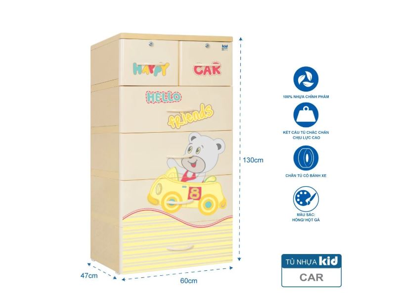 Tủ nhựa làm bằng nhựa đài loan nhập khẩu nên bền. Chắc , đẹp. Có nhiều màu , hình ngộ nghĩnh cho bé. tủ có nhiều ngăn rất thuận tiên cho bé cất đồ cá