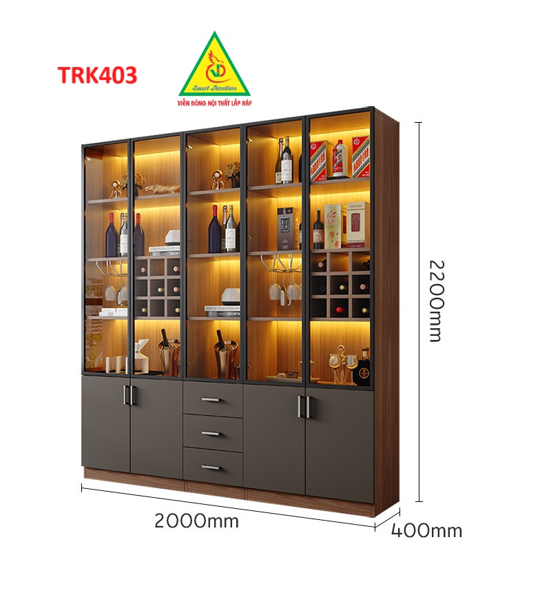 ✨Tủ rượu cánh kính, tủ trưng bày rượu TRK403- Nội thất lắp ráp Viễn Đông ADV