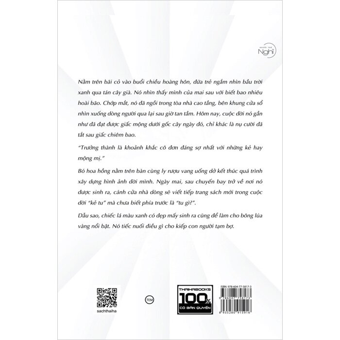 Trích đoạn sách Tu Thành - Thành Tu Tu là quá trình sửa, tập tự hủy mình đi như hạt lúa mì đã tự hủy chính mình trong lòng đất, mặc cho cơn mưa trút xuống thân xác đã vỡ vụn đầy thương tích để mầm sống mới được ươm lên.