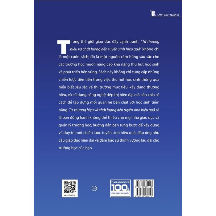 Từ thương hiệu và chất lượng đến tuyển sinh hiệu quả không chỉ là một cuốn sách hướng dẫn, mà còn là nguồn cảm hứng, khích lệ mỗi trường học sáng tạo, đổi mới không ngừng và phấn đấu đạt được mục tiêu tuyển sinh, đóng góp vào sự phát triển bền vững của giáo dục tư thục. Với thông điệp mạnh mẽ và nội dung phong phú, cuốn sách này chắc chắn sẽ trở thành nguồn tài nguyên quý giá cho bất kỳ ai đang nỗ lực đưa trường học của mình vươn lên một tầm cao mới trong lĩnh vực tuyển sinh.