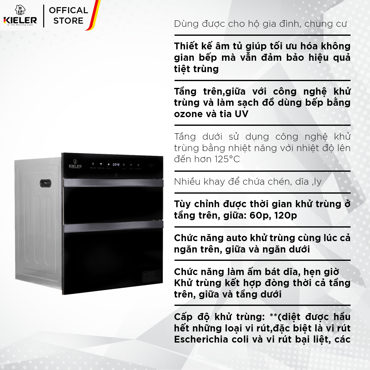 TủKhửTrùngKieler #KLTA595 #KhửTrùng #ChếBiếnThứcĂn #BảoQuảnThựcPhẩm #AnToànVệSinh #TiệnÍchBếp #HơiNước #TiaUV