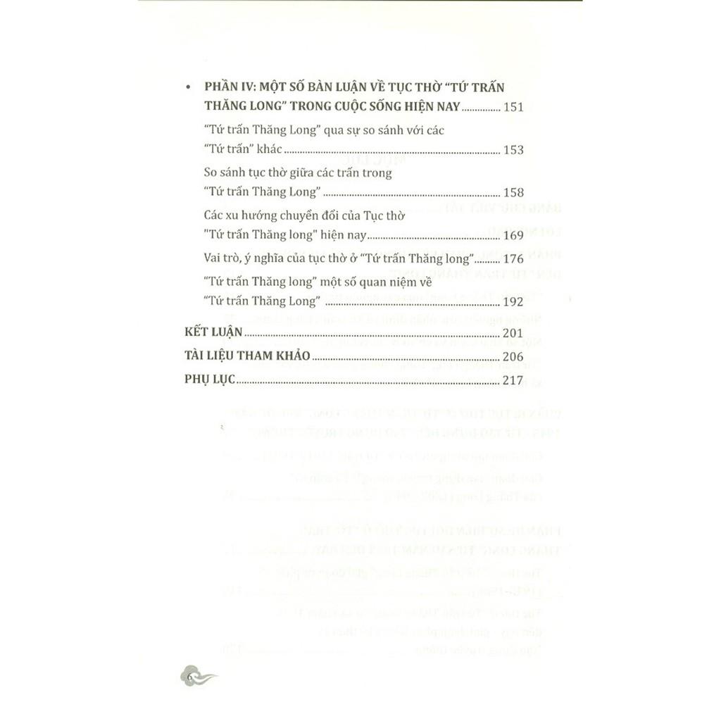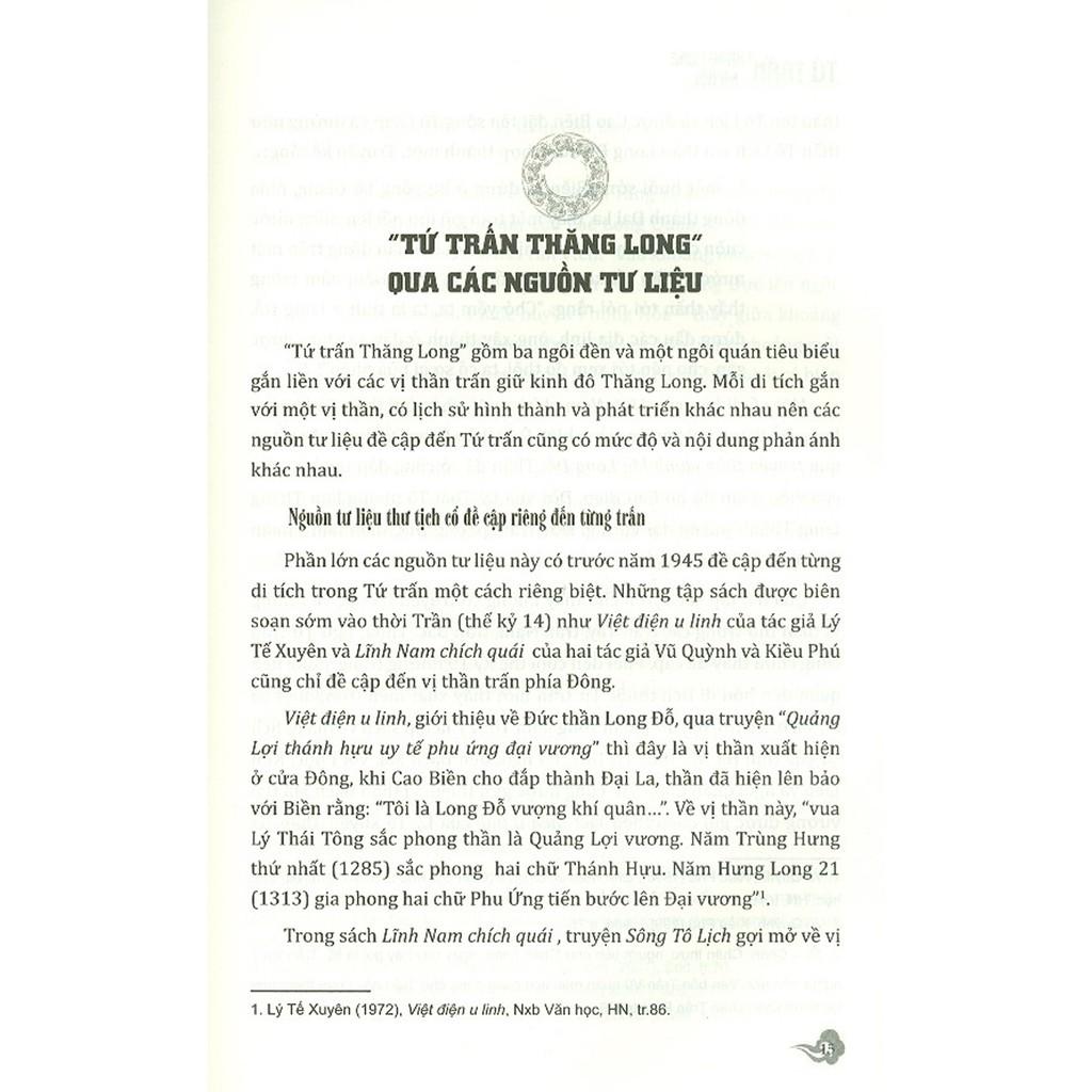 Để lý giải những câu hỏi này, tác giả sẽ mô tả quá trình tạo dựng tục thờ ở “Tứ trấn Thăng Long - Hà Nội” qua các truyền thuyết, hệ thống thần điện, nghi lễ phụng thờ bốn Đức thần ở Tứ trấn và xem xét, đánh giá cơ sở, nền tảng về không gian văn hóa xã hội cho sự hình thành và phát triển nơi thờ bốn vị thần trong bốn ngôi đền (Tứ trấn) ở Hà Nội.