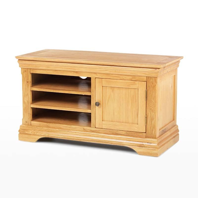 Là sự kết hợp hoàn hảo giữa sức quyến rũ vượt thời gian với tính thực dụng hiện đại, mẫu tủ TV gợi nhớ đến phong cách cổ điển Pháp thế kỷ 19. Thuộc bộ sưu tập Victoria đặc trưng bởi mái vòm và những đường cong quyến rũ, thêm kiểu thiết kế 1 cánh lệch duyên dáng. Chính vì thế, nếu không có chương trình gì hay trên TV thì chiếc tủ này cũng giúp bạn có thứ để ngắm nghía, chiêm ngưỡng. Một hộc lớn với kệ di động để cất giữ đồ dùng không muốn trưng bày, còn bề mặt và các ngăn chính giữa sẽ giúp bạn để các thiết bị âm thanh giải trí hay những đồ trang trí khác. Chất liệu gỗ sồi trắng Mỹ nhập khẩu, có giá trị kinh tế cao và được chế tác hoàn toàn thủ công bởi những người thợ lành nghề. Toàn bộ bề mặt được sơn phủ PU kỹ càng, giữ nguyên được vẻ đẹp của vân gỗ, đồng thời bảo vệ lớp gỗ lâu bền trong các điều kiện khí hậu khác nhau