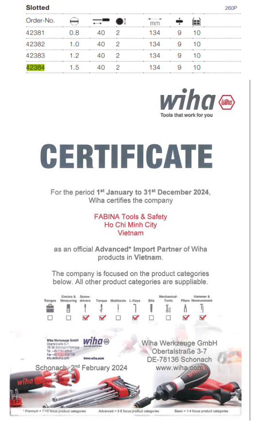 - Hãng sản xuất: Wiha - Đức - Thương hiệu: Wiha - Xuất xứ: Đức - Model: 42382 - Bảo hành: 12 tháng