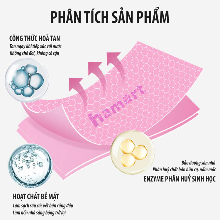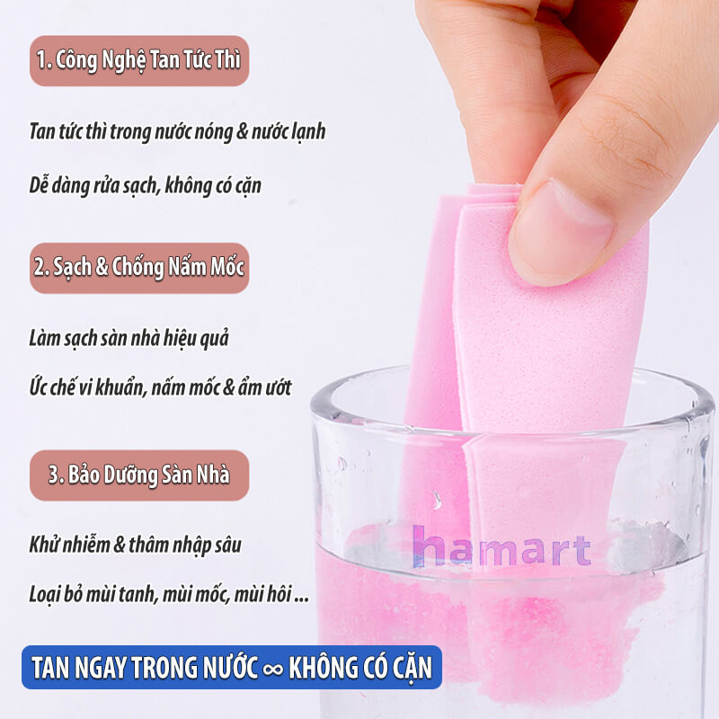 - Công nghệ tan nhanh trong nước, không còn tình trạng cặn bám lại sau mỗi lần lau, giảm thời gian và công sức vệ sinh.