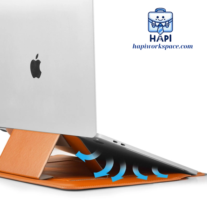 Mua tại TiktokThiết kế tích hợp chức năng kê laptop giúp tạo góc độ công thái học làm giảm áp lực khi sử dụng trong thời gian dài Chất liệu da PU chống thấm nước giúp laptop