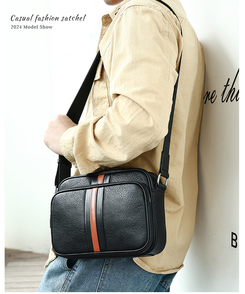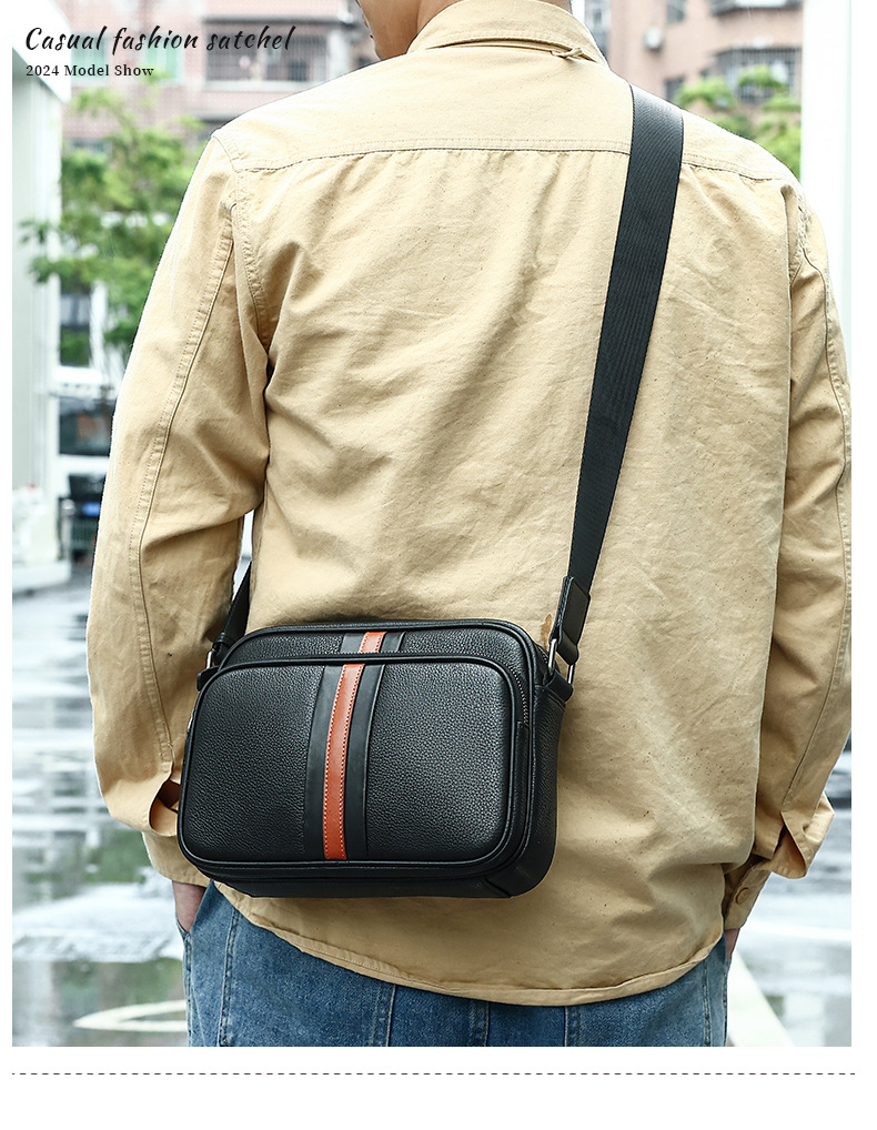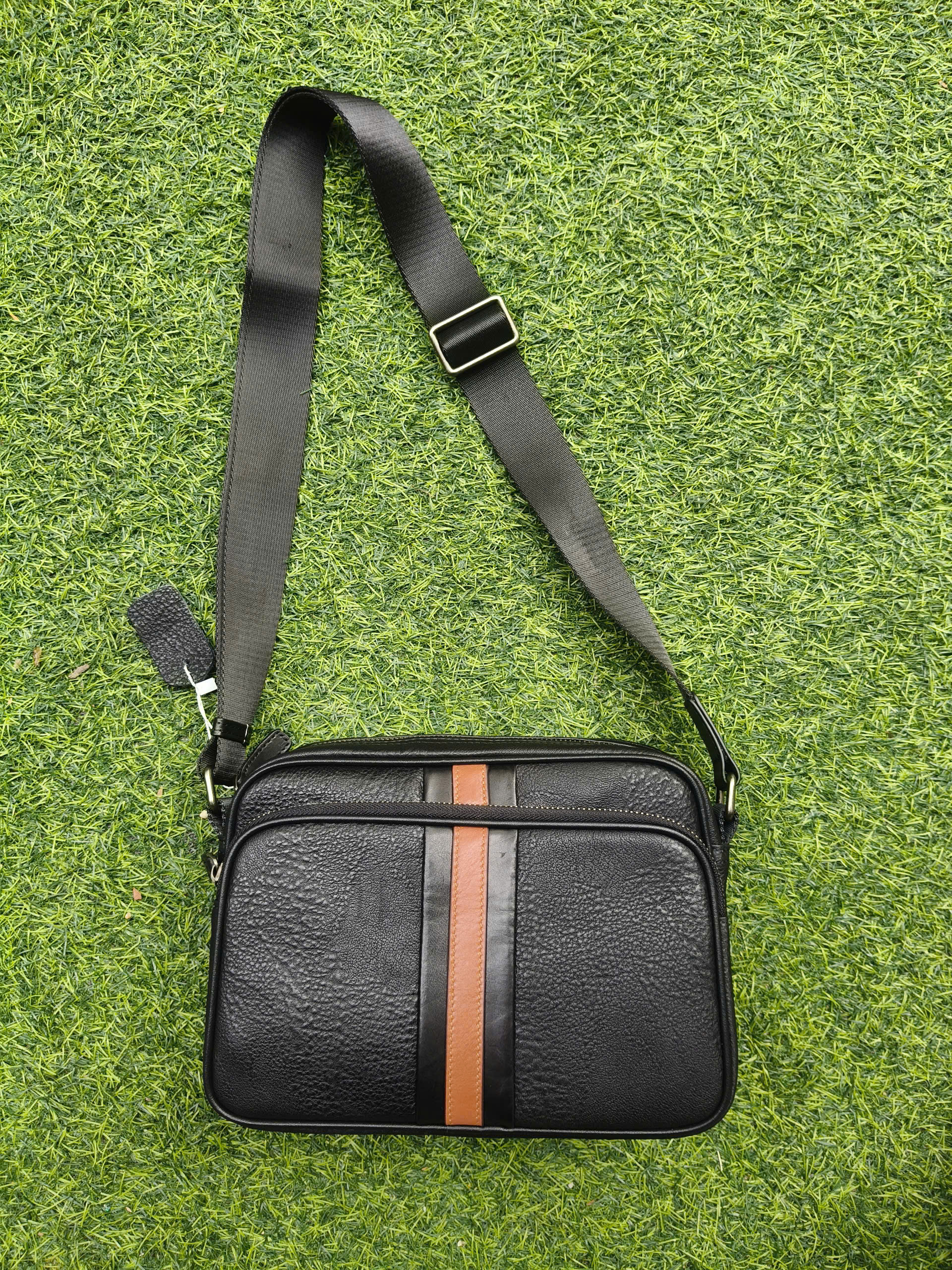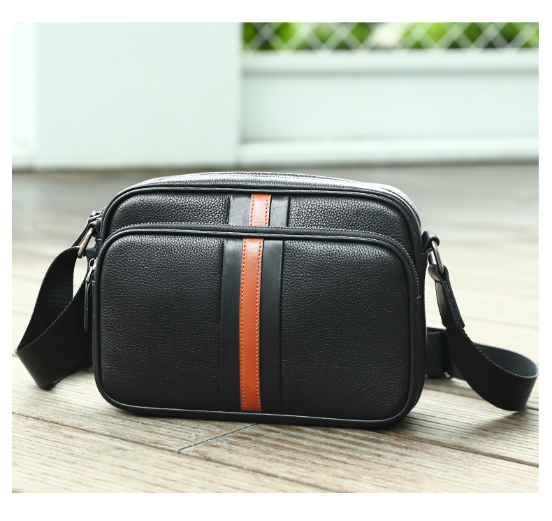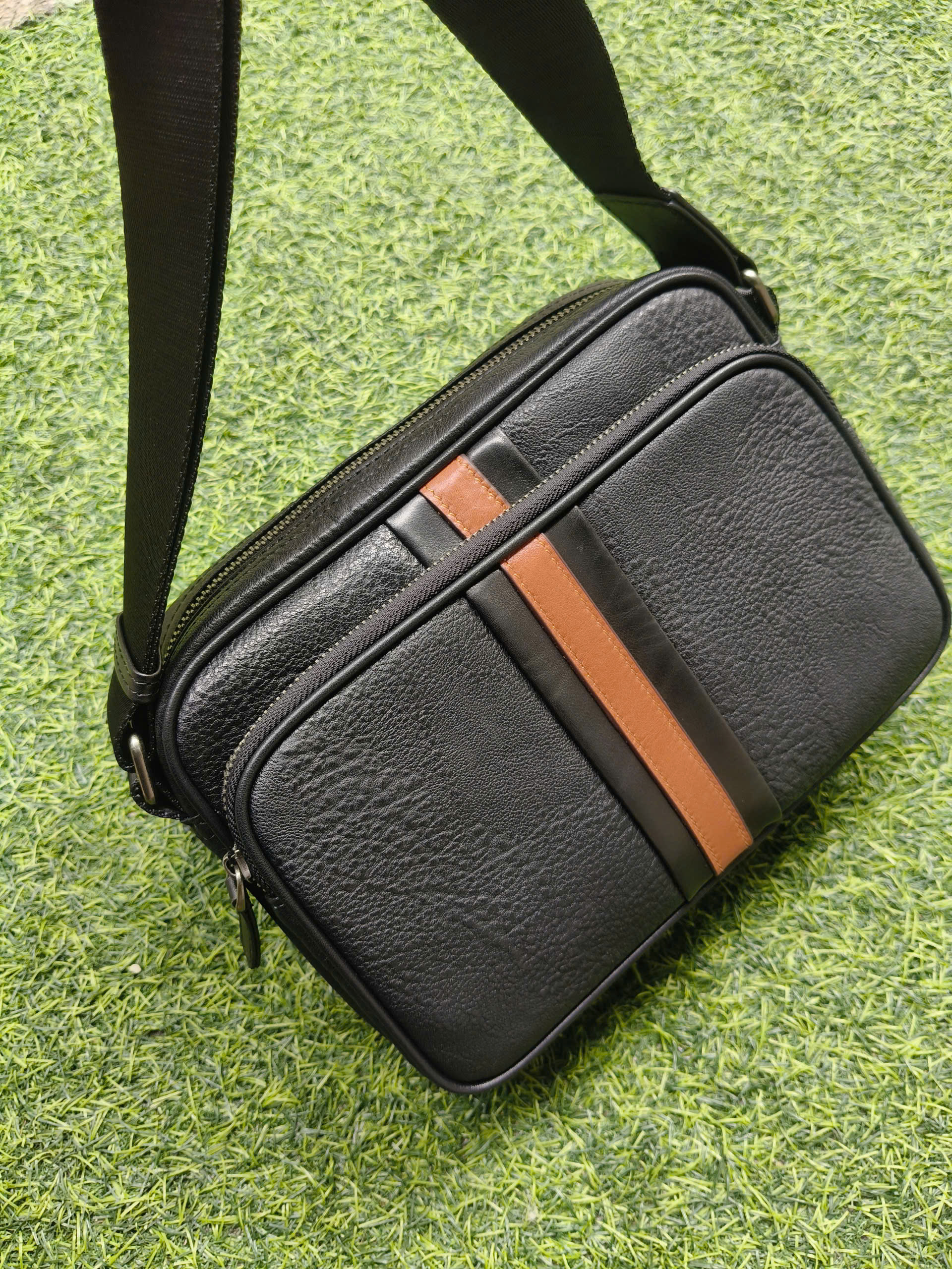 Thiết kế tinh tế, nhỏ gọn: phần da nâu giữa túi tạo điểm nhấn trẻ trung và nam tính, dễ phối đồ với mọi phong cách.
