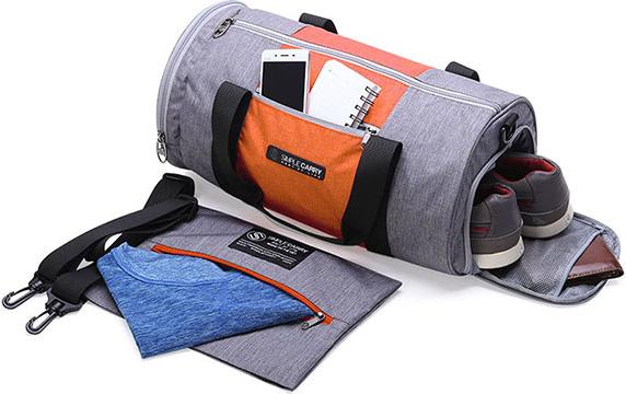 Túi gồm 1 ngăn chính lớn, 1 ngăn bên trái có ngăn đựng điện thoại, vật dụng nhỏ và 1 bên phải là ngăn đựng giày, hoặc áo mưa.