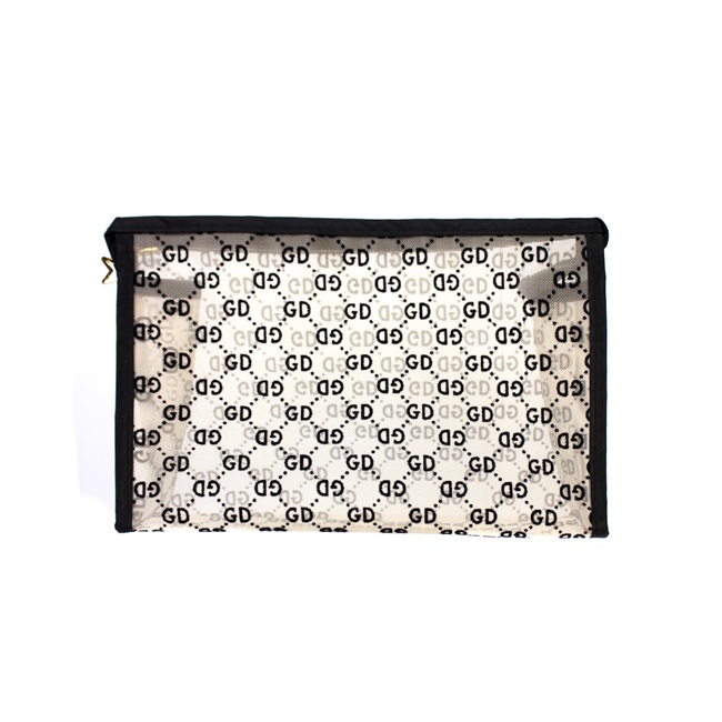 Kích thước: 21x12x13 cm Chất liệu: Nhựa nylon, khoá kéo kim loại Màu sắc: Màu kem họa tiết đen Số ngăn: 1 ngăn lớn Mô tả sản phẩm: Túi đựng mỹ phẩm cao cấp họa tiết hiện đại Care4u