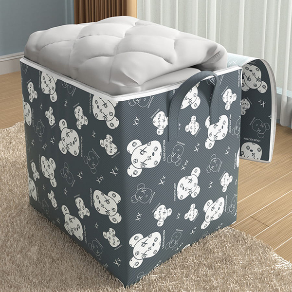 THÔNG TIN SẢN PHẨM Chất liệu: Vải polyester Kích thước: 48 x 44 x48cm Màu sắc: Nâu/Xám Túi đựng chăn ga, quần áo hình gấu có khóa kéo cao cấp góp phần trang trí, làm không gian rộng rãi thoáng mát hơn, có nhiều diện tích để đồ vật hơn. Giúp bảo quản quần áo tránh ẩm mốc và bụi bẩn bên ngoài. Ưu điểm nổi bật Túi đựng quần áo chăn màn size lớn có khoá kéo cao cấp
