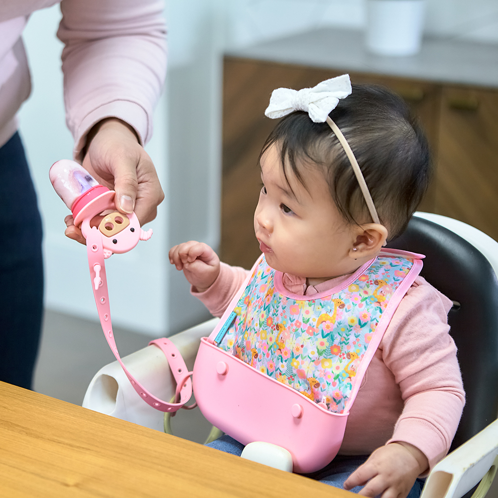 Giúp bé tập ăn dặm, tăng kỹ năng nhai nuốt, kích thích vị giác tận hưởng trọn vị ngon của trái cây hay rau củ thông qua các lỗ của túi lưỡi. Tăng khả năng hoạt động của lưỡi giúp phát triển khả năng ngôn ngữ của trẻ sau này.