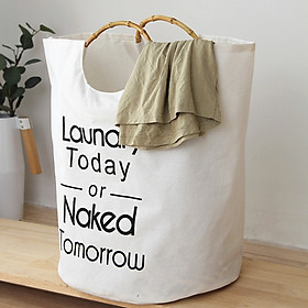 Túi sọt vải bố dầy, túi cỡ lớn quai gỗ sang trọng đựng đồ giặt, quần áo bẩn, giỏ đựng chơi, vật dụng đa năng