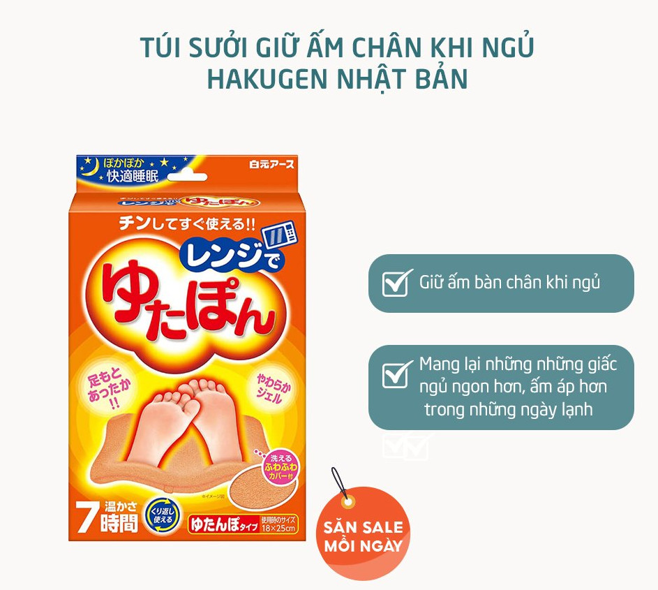 Sản phẩm được sản xuất tại NHẬT BẢN, trên dây chuyền công nghệ cao, đảm bảo chất lượng sản phẩm. Túi sưởi giúp giữ ấm bàn chân khi ngủ, từ đó mang lại những những giấc ngủ ngon hơn, ấm áp hơn trong những ngày lạnh. Là món quà rất phù hợp trong những ngày đông giá lạnh.