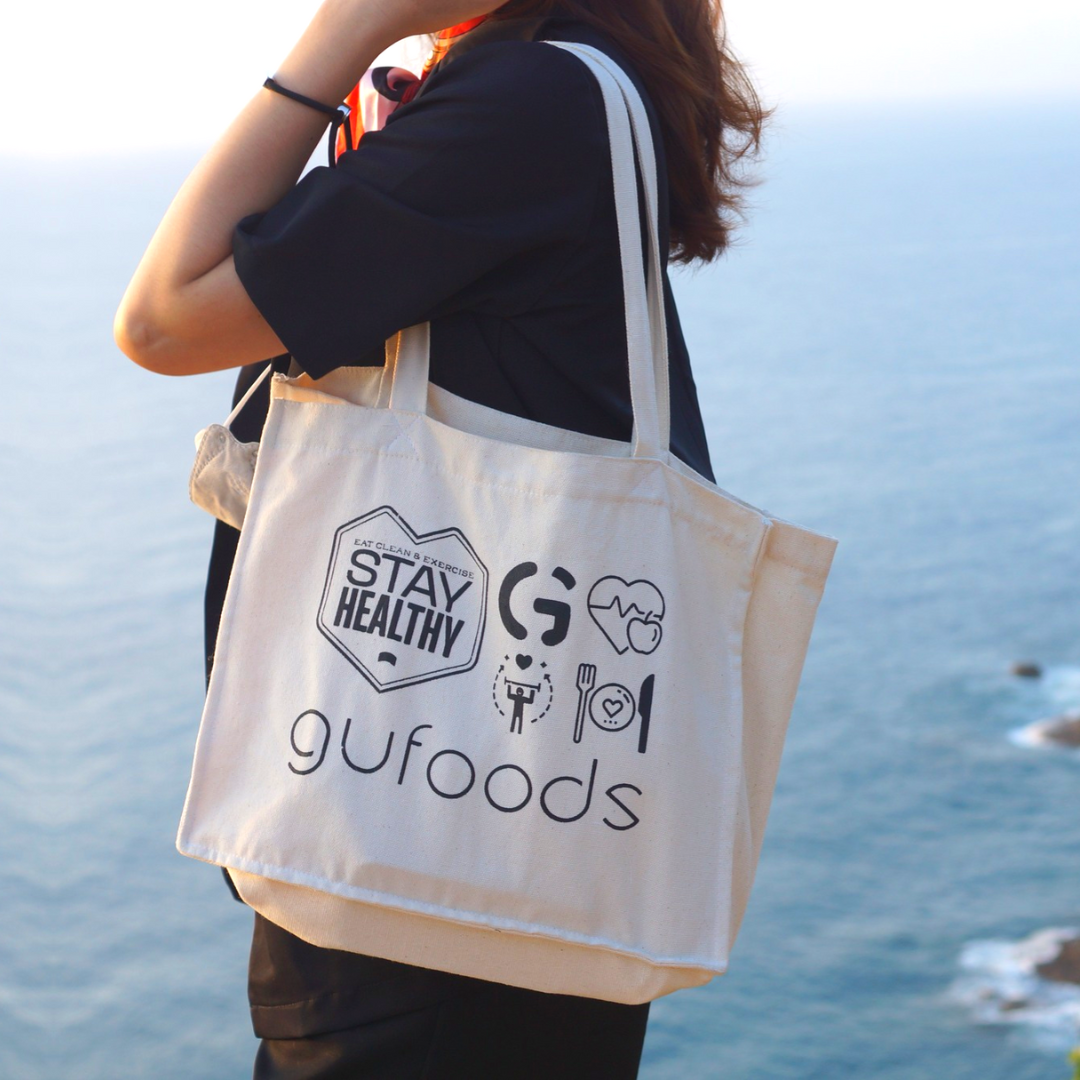 Với thiết kế xinh xắn, đơn giản và chất liệu chắc chắn, thân thiện với môi trường, túi canvas GUfoods là túi đựng hộp quà lý tưởng và là trợ thủ đắc lực của bạn khi đi mua sắm, đi học, đi làm hay đi chơi cùng bạn bè.