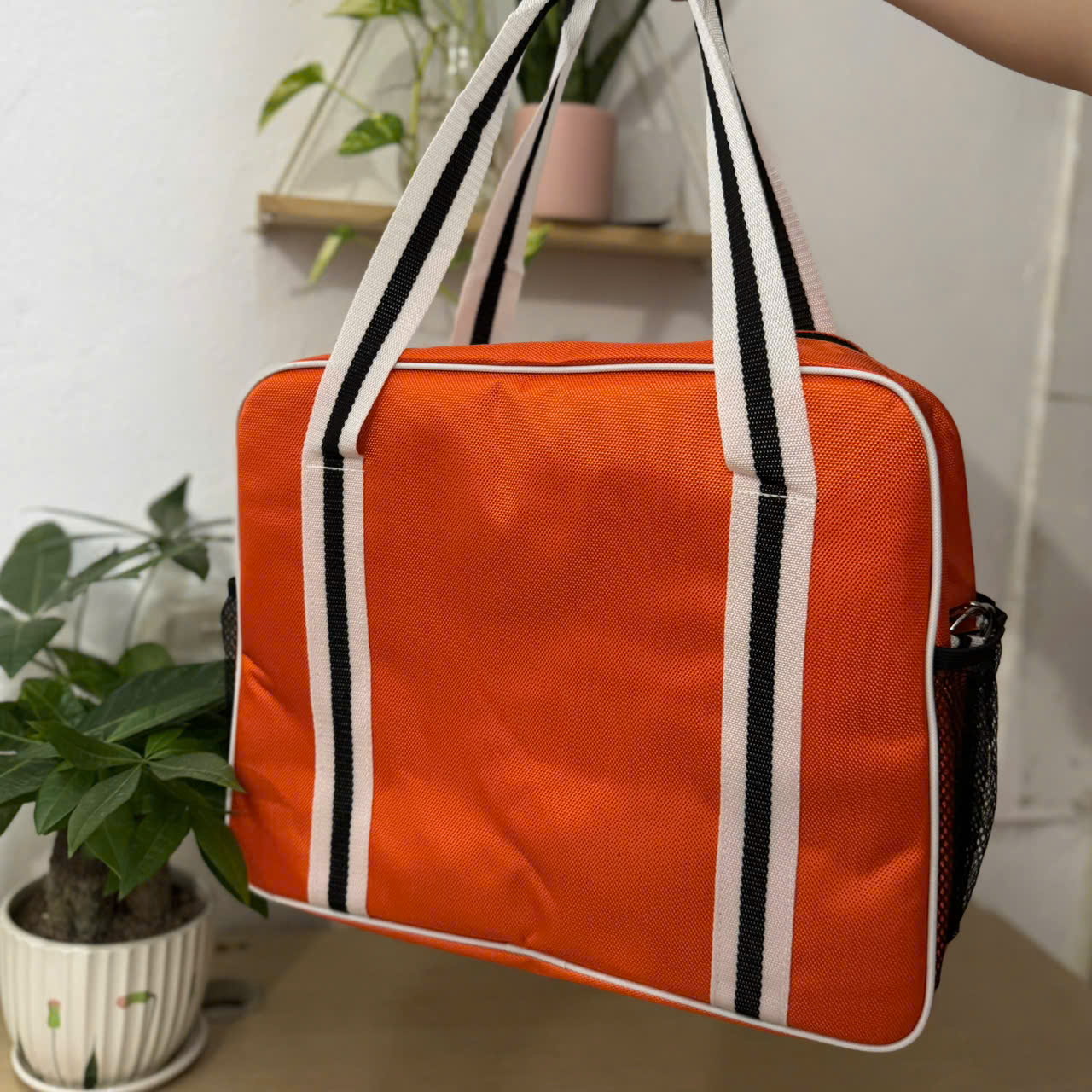 2 Ngăn nhỏ 2 bên đựng phụ kiện, bình nước … Ngoài ra bên trong túi có 1 túi nhỏ đựng thêm phụ kiện, chìa khóa, ví tiền …
