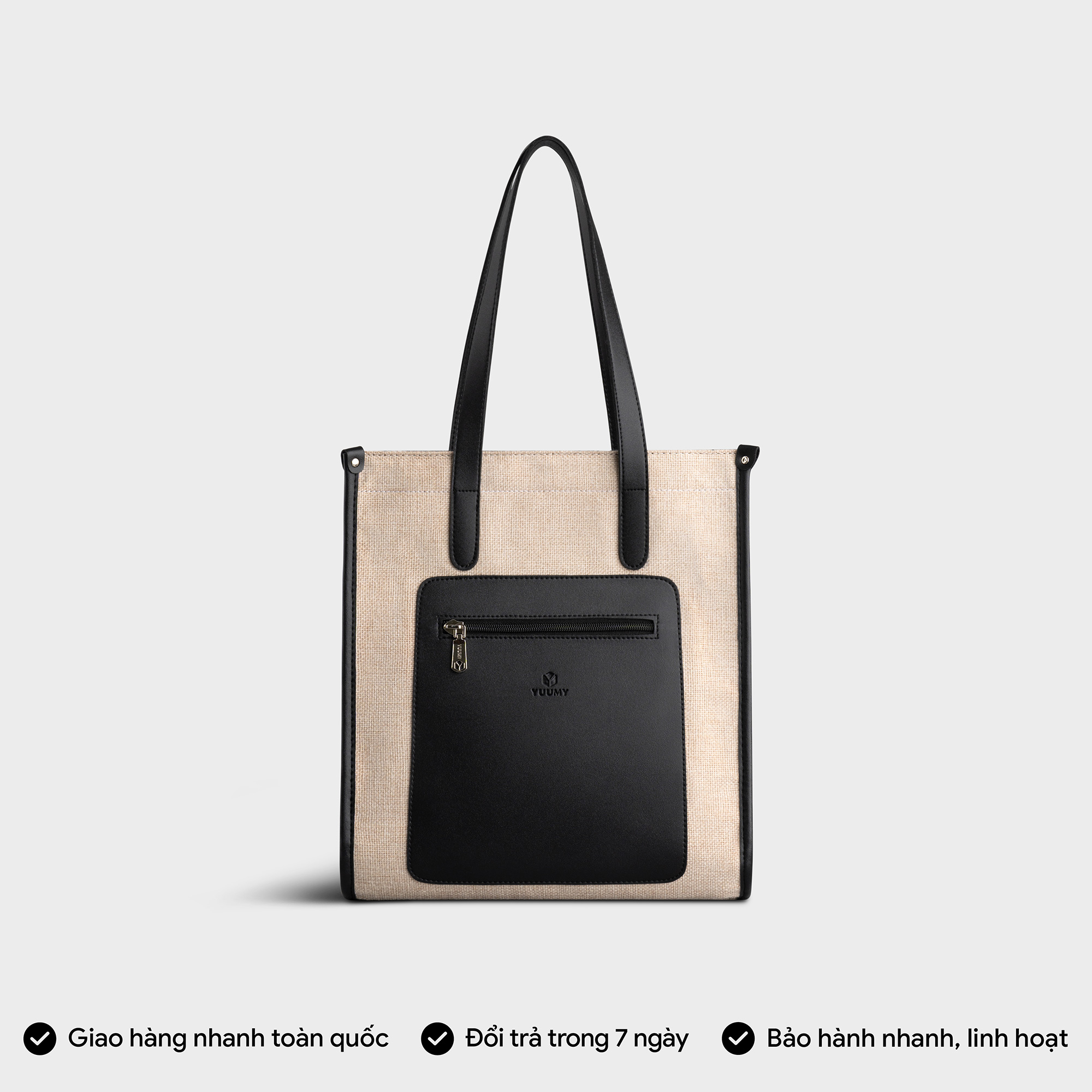 Túi xách cối phối da Yuumy Seasand YTX47 thiết kế theo phong cách tối giản không cầu kỳ, phức tạp. Sản phẩm chú trọng tính tiện dụng, ngăn chứa rộng rãi có thể đựng vừa tài liệu khổ A4, sổ tay và các vật dụng cá nhân khác. Túi có dáng đứng tạo cảm giác gọn gàng, tinh tế. Sản phẩm có khoá kéo đóng mở ngăn chính, quai cầm gập đôi để có thể xách và cả dây đeo vai tiện lợi. Sản phẩm có nhiều gam màu hiện đại và tính ứng dụng cao phù hợp với mọi phong cách thời trang và hoàn cảnh sử dụng của khách hàng.