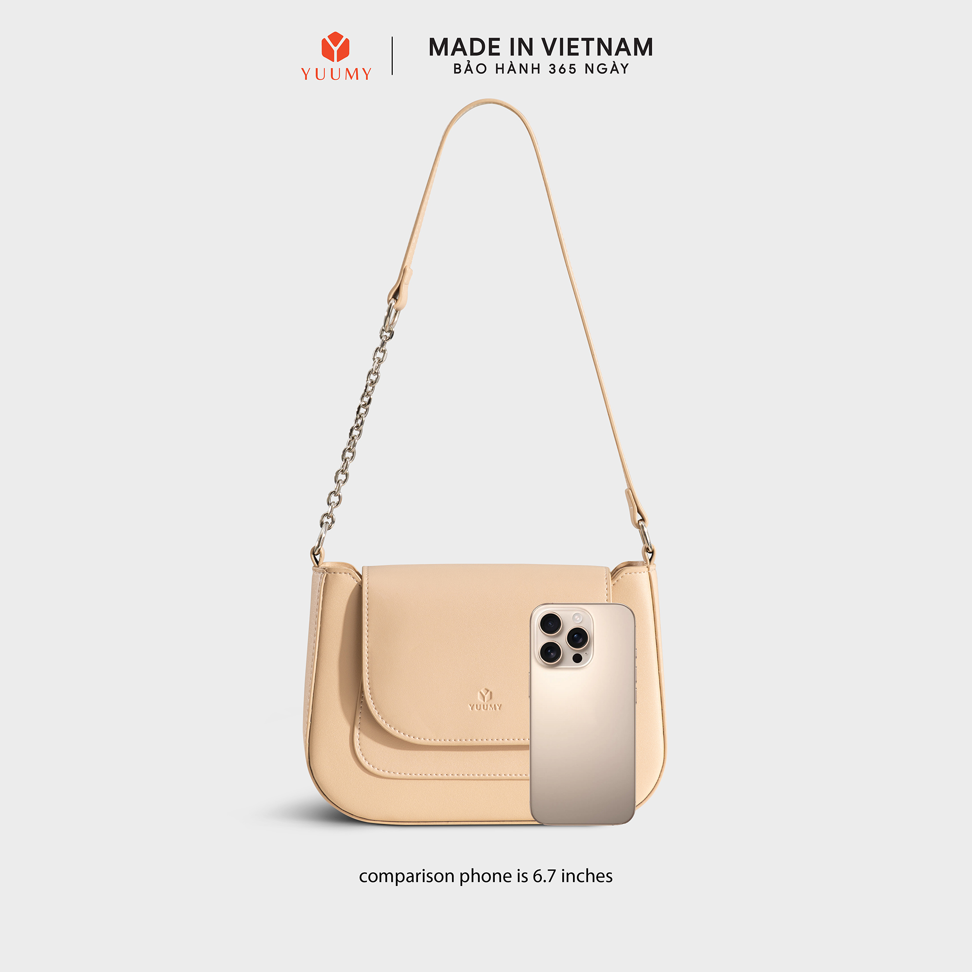 Túi đeo vai dáng cong Yuumy Seasand YN340 thiết kế dáng cong mềm mại kết hợp phần nắp gập tối giản và điểm nhấn dây xích kim loại hai bên vừa tôn lên sự nữ