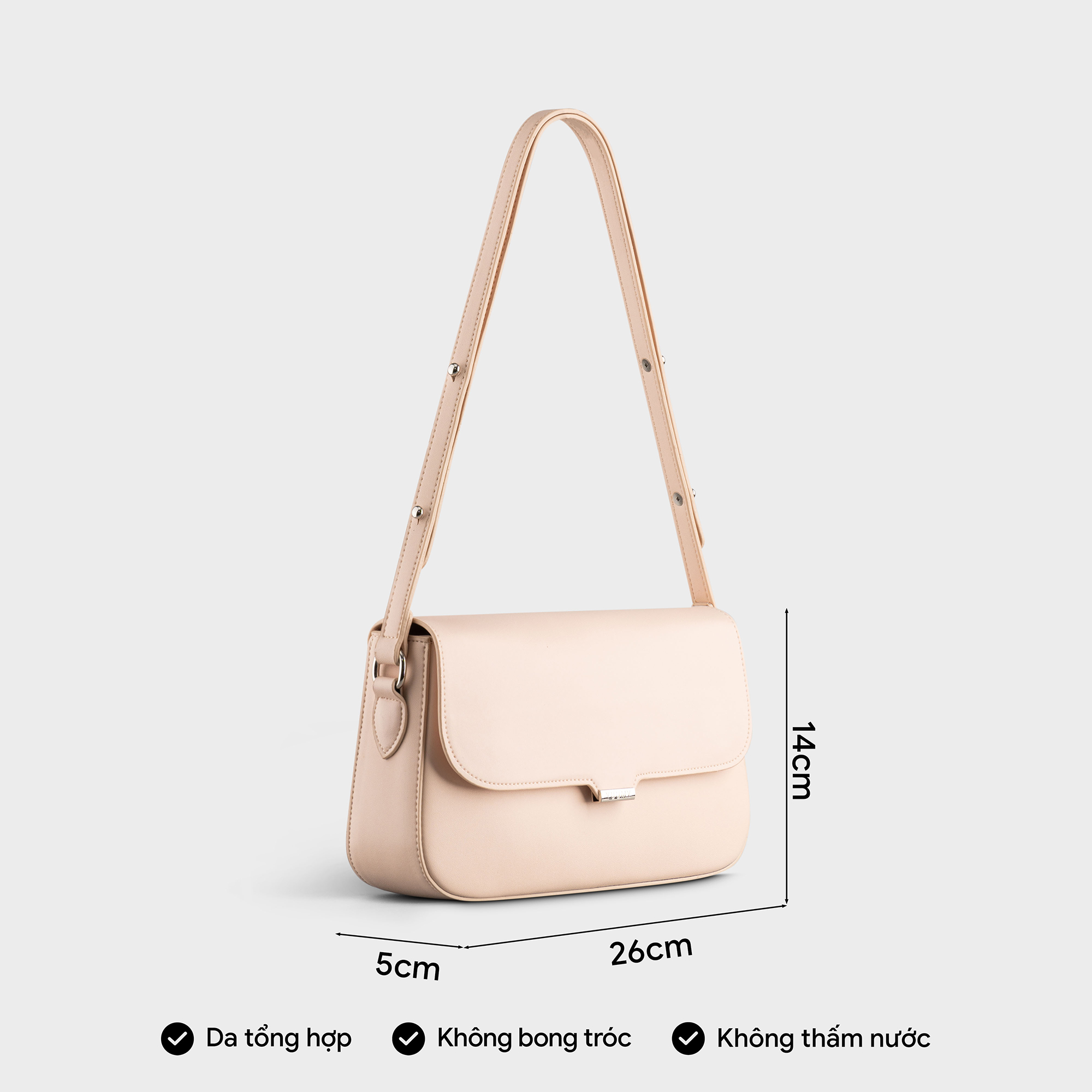Túi xách vai Yuumy YTX76 với thiết kế dáng vòm mềm mại, form đứng vững vàng cùng gam màu dịu nhẹ, chiếc túi này dễ dàng đồng hành cùng bạn trong nhiều hoàn cảnh –