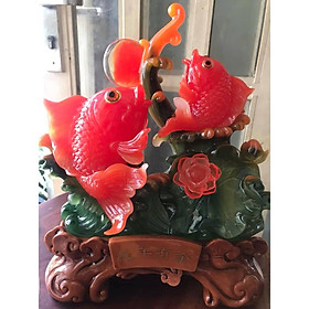 Tượng 2 Cá Chép Đỏ Phong Thủy May Mắn Tài Lộc Đầu Năm Để bàn CAO 36cm ĐK 30cm SÂU 17cm/SUNNY Q8