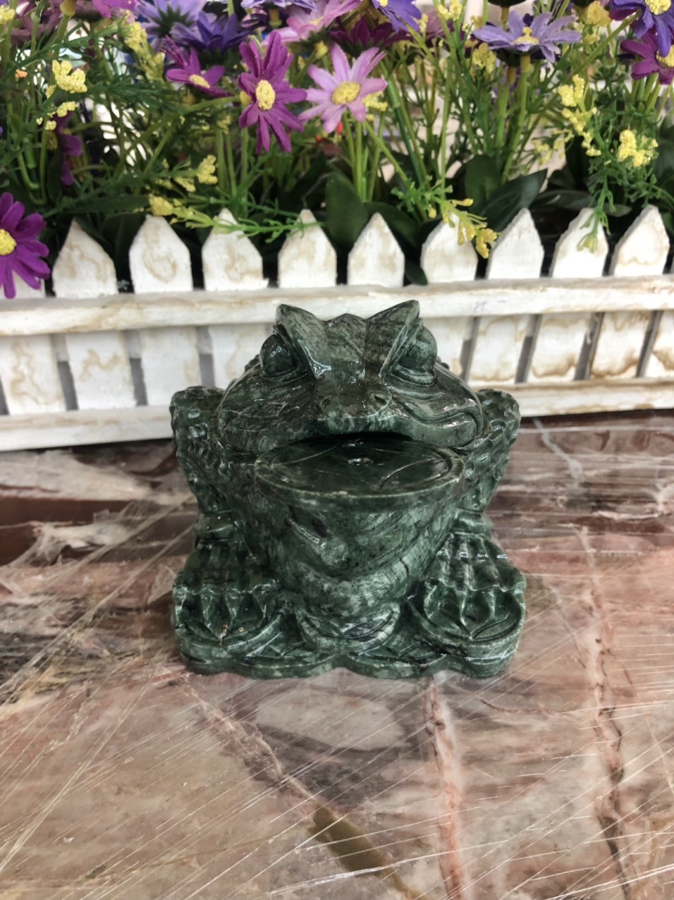 Chất liệu: Đá ngọc Ấn Độ Kích thước: Dài 13 cm x Rộng 10 cm x Cao 11 cm Khối lượng: 1,62 kg Thiềm Thừ được người xưa gọi là Cóc tài lộc, Cóc ba