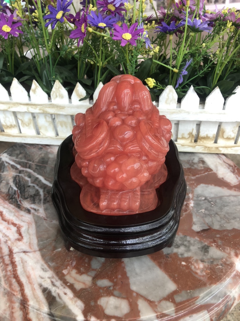 Tượng Phật Bà Quan Âm Mới Đá Lưu Ly Hồng Để Trong Xe Hơi hoặc trên bàn cao 12cm đk 7cm đế 5cm hợp Anh Chị Mệnh Hỏa mệnh Thổ ạ *** Tượng Phật Bà
