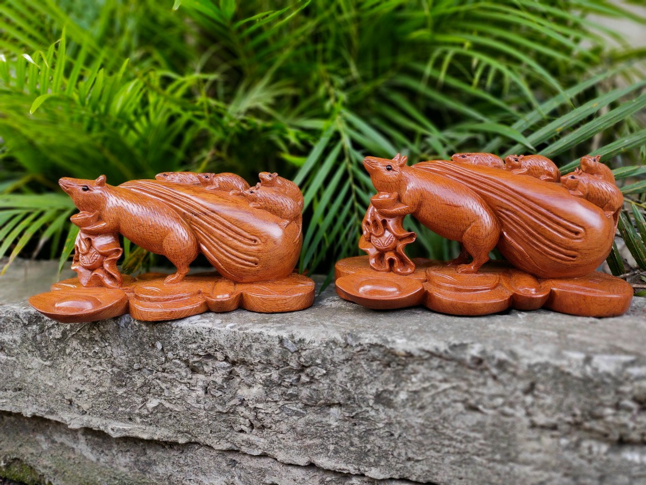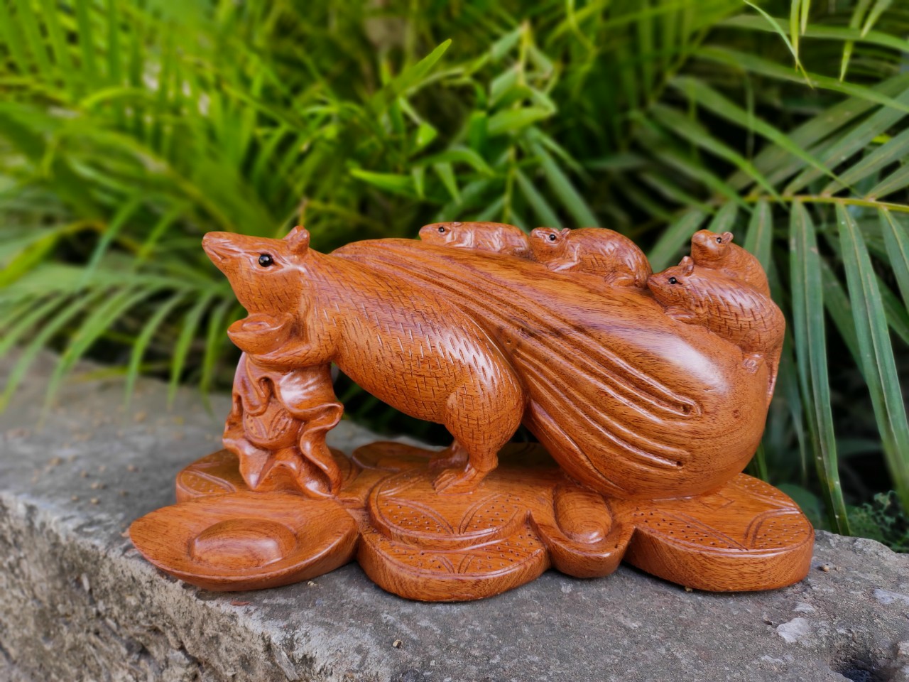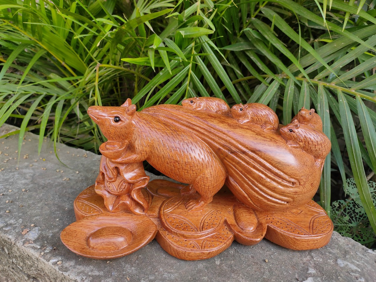 ✨Tượng con chuột bằng gỗ hương đá kt 20×15×12.5cm