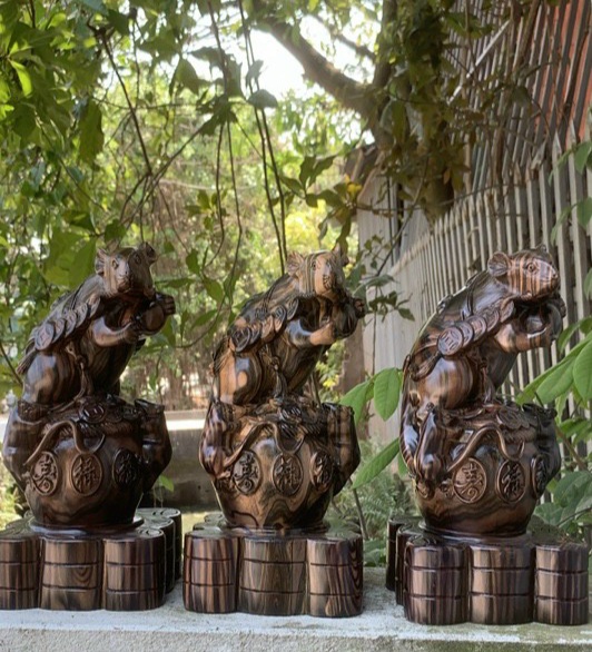 _ Tượng con chuột được điêu khắc tỉ mỉ ,tinh sảo kỳ công .Đi hầu hết tất cả mọi chi tiết góc ngách nội dung hoa văn của tượng đều được gọt tỉa chỉnh sửa sắc nét ,chỉnh chu hòan toàn bằng tay thủ công .Đồng thời tượng được kiểm định kỹ lưỡng khắt khe ,như cho vào thẩm sấy cho gỗ khô kiệt .Mục đích trống dập nứt vênh mo mối mọt .Kết hợp với trà nhám ,đánh giấy giáp nhiều nước sờ mát lạnh rồi cho vào phun lót làm bóng mờ để giữ lại mầu sắc vân gỗ tữ nhiên .Tượng con chuột được làm và hoàn thiện từ những bàn tay khối óc tài hoa .Từ những người thợ dầy rặn kinh nghiệm ,Trong làng nghề truyền thống .Chính vì thế tượng con chuột đã đáp ứng đầy đủ tất cả mọi tiêu trí ( Đẹp bền rẻ ) Thẩm mỹ nghệ thuật với chất lượng tuyệt vời