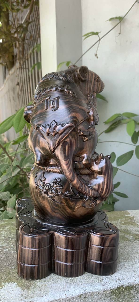 _ Tượng con chuột phong thủy tài lộc được làm bằng chất liệu gỗ mun hoa liền khối tự nhiên 100%