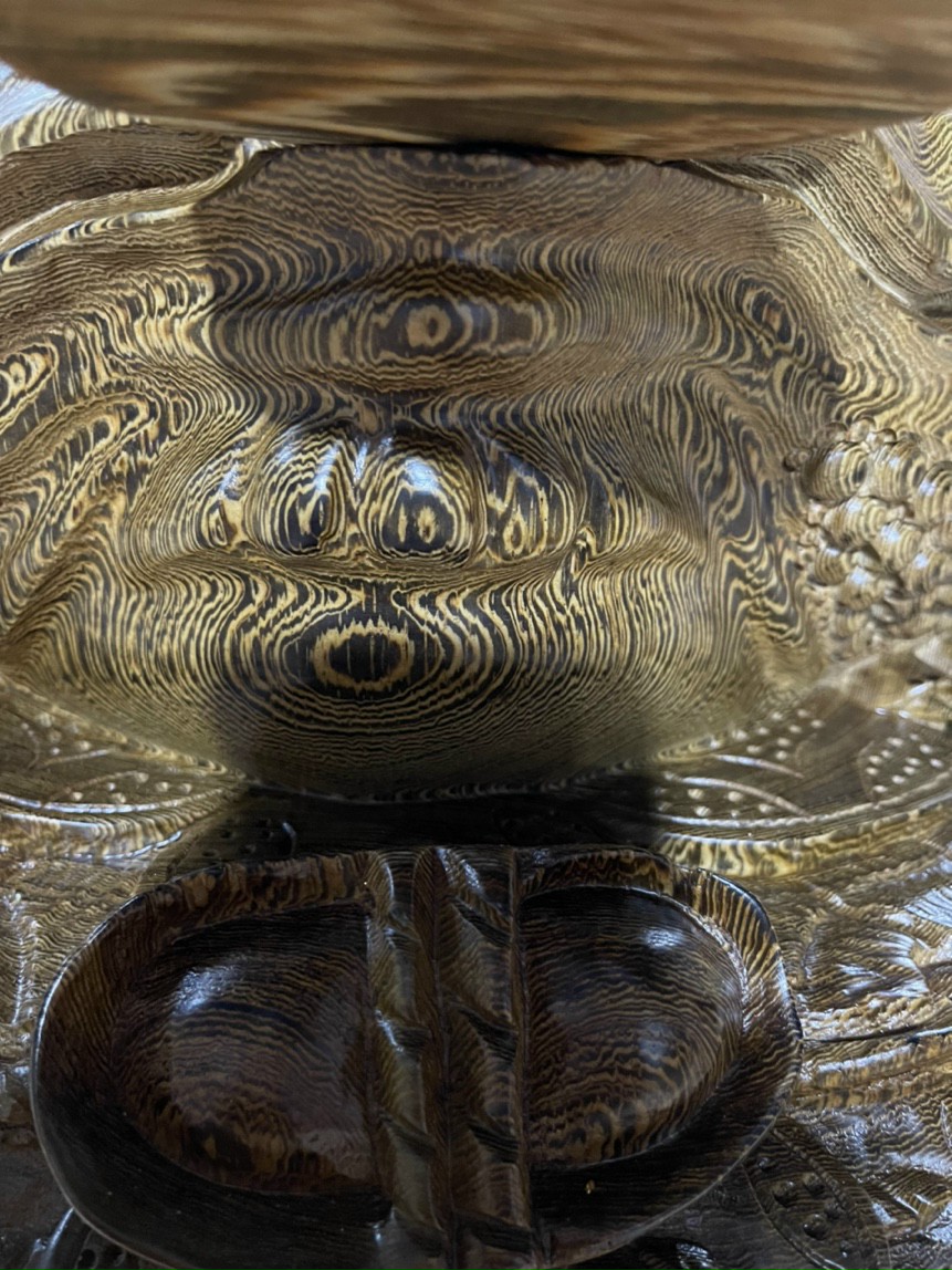 ✨Tượng con cóc phong thủy hút tài lộc bằng gỗ mun đuôi công kt 47×47×40cm