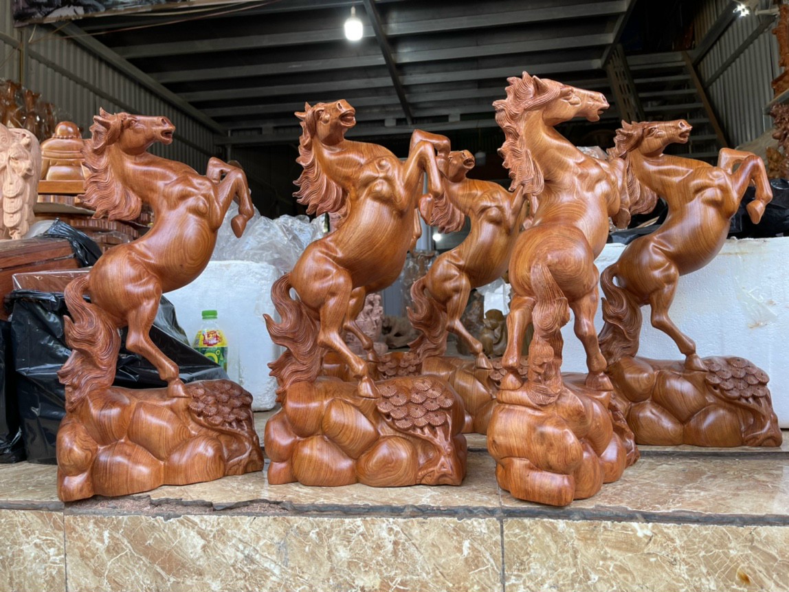 Tượng con ngựa mã đáo thành công được làm bằng chất liệu gỗ hương đá tự nhiên 100% Kích thước cao 50×23×12cm _ Tự con ngựa đã đáo thành công được trạm khắc tỉ mỉ tinh sảo kỳ công .Đi hầu hết mọi chi tiết góc ngách ,nội dung hoa văn của tượng con ngựa .Đều được ngọt tỉa chỉnh sửa hoàn toàn bằng tay thủ công .Đồng thời tượng con ngựa .Được kiểm định rất kỹ lưỡng như cho vào thẩm sấy .Cho gỗ khô kiệt mục đích trống dập nứt vênh mo mối mọt .Kết hợp với trà nhám đánh giấy giáp kỹ cho sạch sẽ ,Sờ mát lạnh song cho vào phun lót làm bóng mờ để giữ lại mầu sắc vân gỗ tự nhiên .Tượng con ngựa .Được làm và hoàn thiện do bàn tay khối óc tài hoa .Từ những người thợ dầy rặn kinh nghiệm ,Cũng như tay nghề cao trong làng nghề truyền thống .Chính vì tượng con ngựa đã đáp ứng đầy đủ những tiêu trí ( Đẹp bền rẻ ) Thẩm mỹ nghệ thuật với chất lượng tuyệt vời