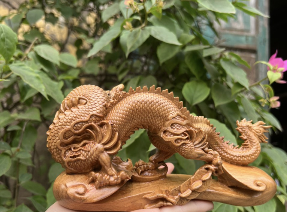 ✨Tượng con rồng phong thủy bằng gỗ bách xanh thơm nức kt 20×10×7cm