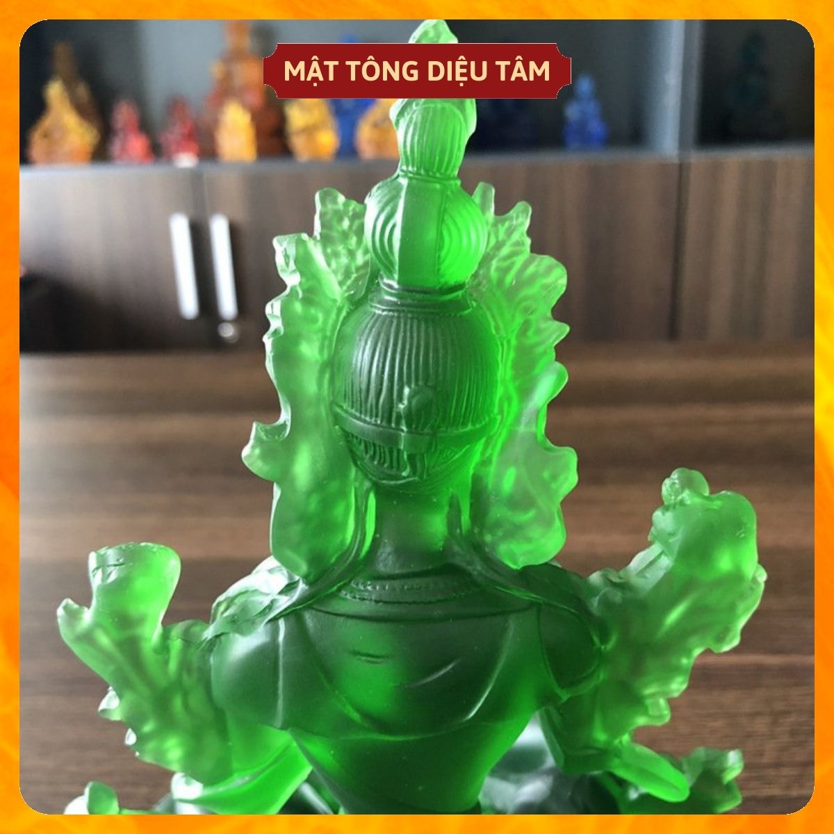 Tượng Phật Bà Quan Âm Mới Đá Lưu Ly Xanh Lá Tươi Đẹp Để Xe Hơi hoặc để bàn cao 12cm đk 7cm đế 5cm Hợp Mệnh Hỏa Mệnh Mộc ạ *** Tượng Phật Bà