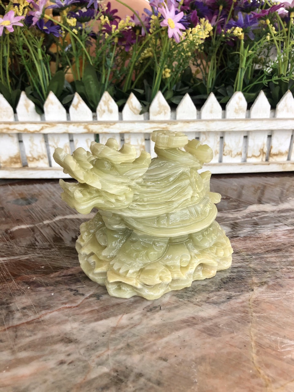 Chất liệu: Đá ngọc hoàng long Kích thước: Dài 12 cm x Rộng 8 cm x Cao 8,5 cm Khối lượng: 890g Trong truyền thuyết Long Sinh Cửu Phẩm (Chín đứa con của rồng) thì