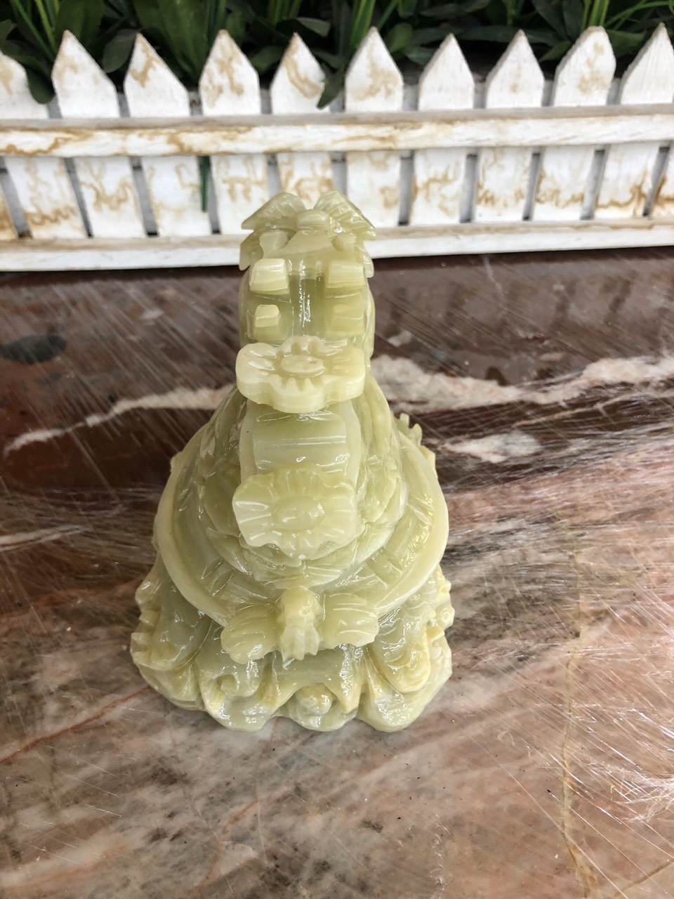 Chất liệu: Đá ngọc hoàng long và ngọc onyx xanh Kích thước: Dài 7 cm x Rộng 5 cm x Cao 10 cm Khối lượng: 1,2 kg Vị trí đặt: Bàn làm việc, Phòng khách,