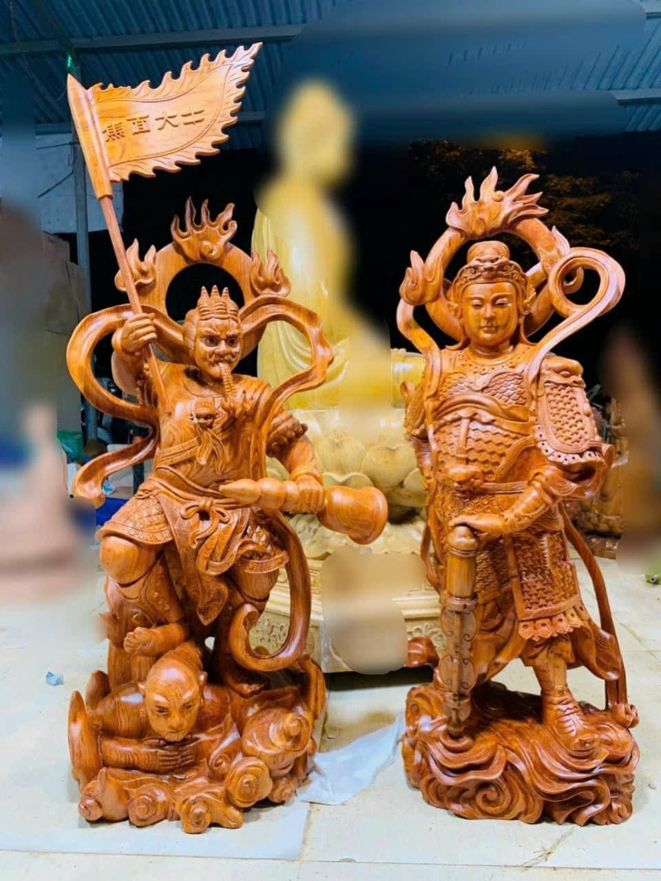 ✨Tượng ngài tiêu diện đại sĩ kt 80×33×30cm và ngài vi đà hộ pháp kt 80×33×25cm bằng gỗ hương đá kt hương đá