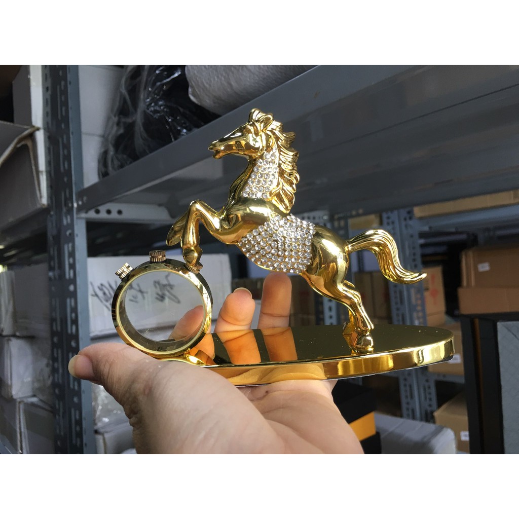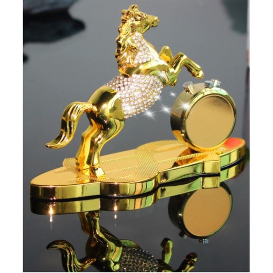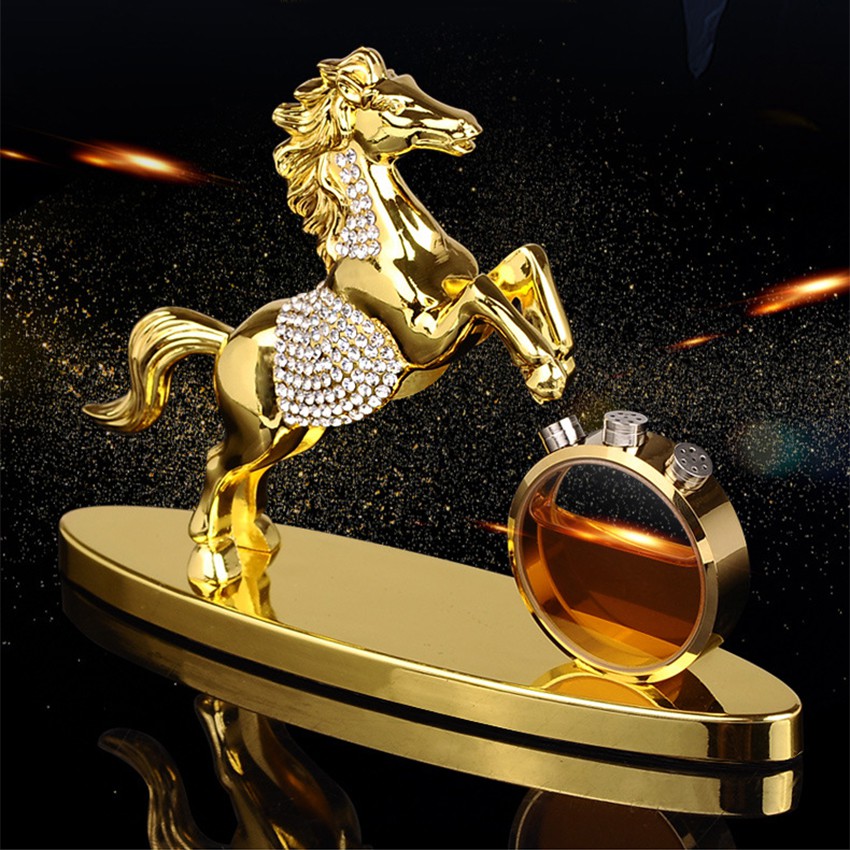 Tượng ngựa mạ vàng nước hoa đính đá Pha lê trang trí taplo ô tô