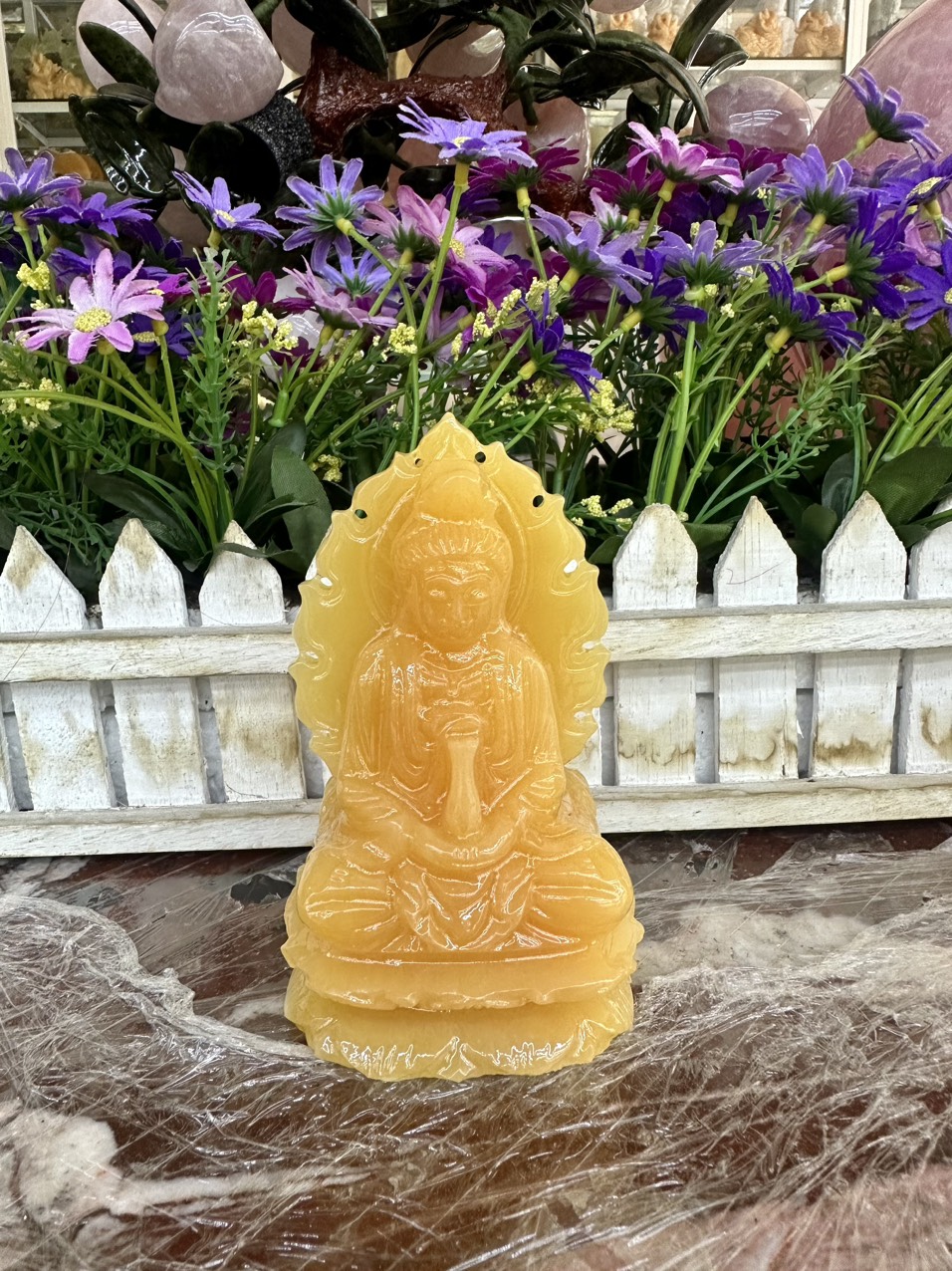 Tượng Phật Bà Quan Âm 2 Mặt đá lưu ly vàng đậm đẹp ĐỂ TRONG XE HƠI hoặc BÀN cao 10cm đk 6cm mệnh KIM mệnh THỔ và THỦY ạ --- Tượng phật bà quan