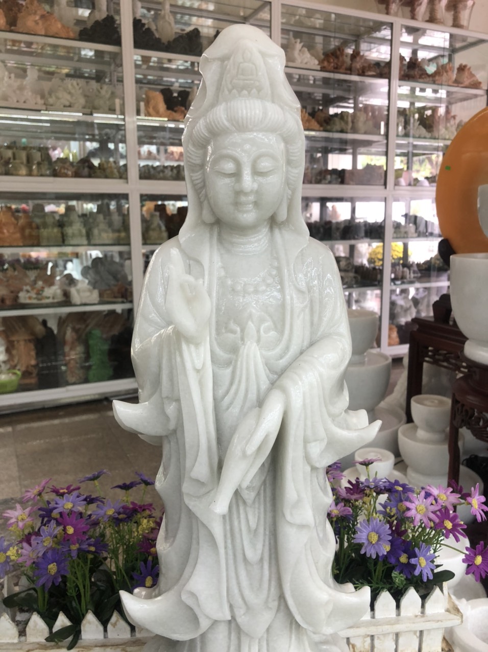 🙏 Lắp Đặt Tượng Phật Quan Âm Đá Cẩm Thạch Trắng Đẹp Cao 1m5 Về Bến Tre. @tuongphatda
