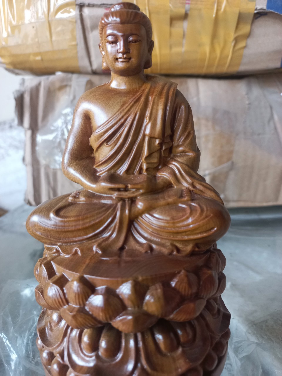 Mua tại Tiktok_ Tượng phật bổ sư thích ca được làm bằng chất liệu gỗ bách xanh liền khối tự nhiên 100%